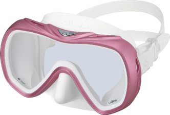 Construction of the nose pocket and surrounding area is altered making it much easier to pinch the nose for improved equalization. Gaps between nose and frame are widened allowing for an easy pinch even when wearing thicker gloves.